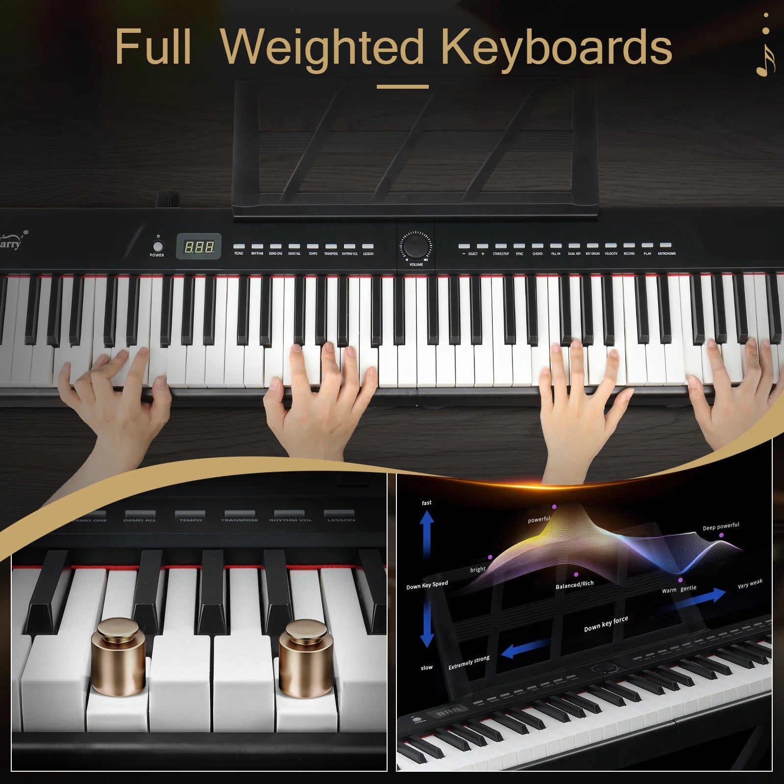 Glarry 88 Key Digital Piano Full Size Semi-Weighted Keyboards Design adopts superior quality custom Dream Sound source, which can bring you the most striking sound effects. Our 88 key piano with two Dual Bluetooth,Audio Bluetooth and MIDI Bluetooth,Connect a COMPUTER or tablet with a USB cable for multimedia interaction. After the piano is turned on, bluetooth will be automatically turned on. The mobile phone can search the MIDI Bluetooth signal of this piano. After the connection, the playing software on the mobile phone can realize the wireless connection with the piano. it can also be used as a gift for relatives and friends, or as a prop for theatrical performances.