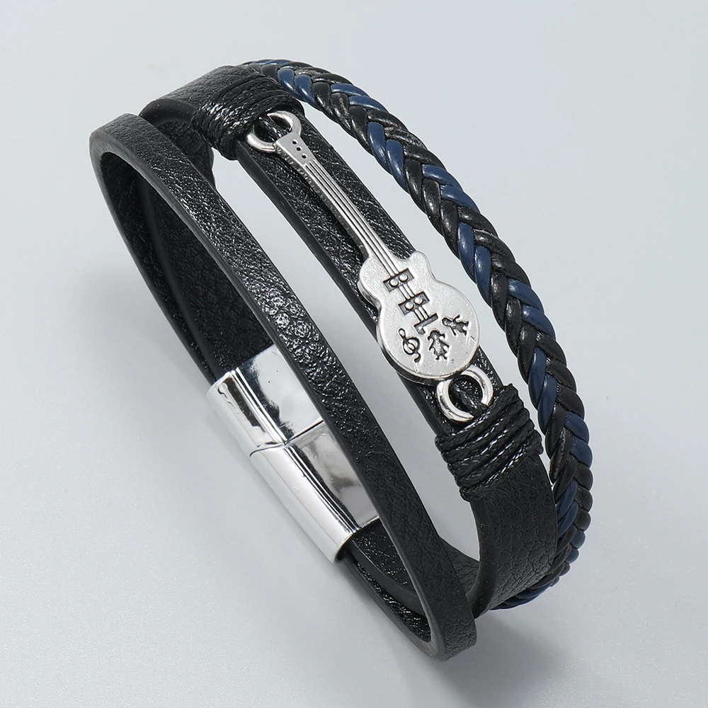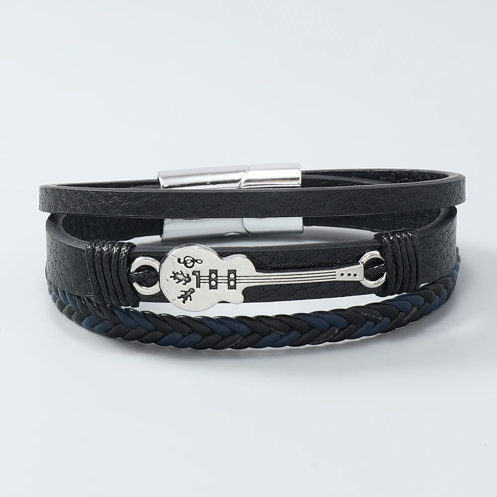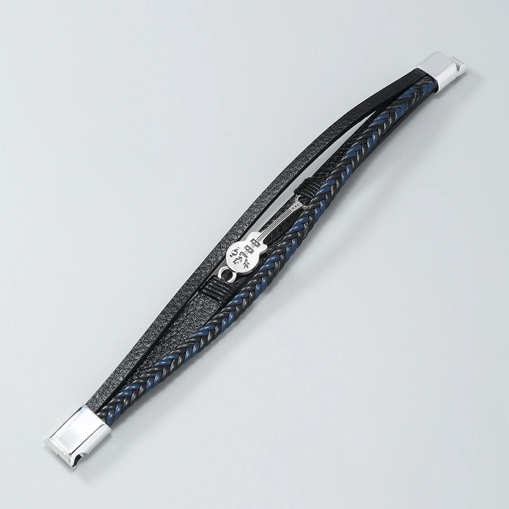 Hip-hop rock jewelry bracelets bangles fashion guitar PU leather bracelet for men