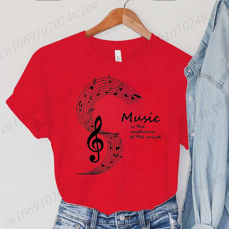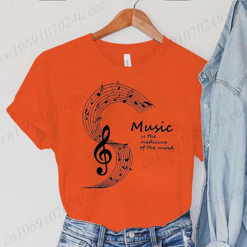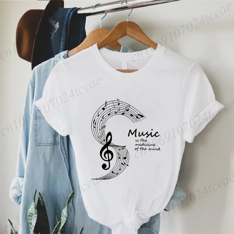 Summer Fashion Brand Women's T-shirt Clothing Music Note Print Tshirt Clothing Y2k Streetwear T Shirt Music Note Lover Tee Tops