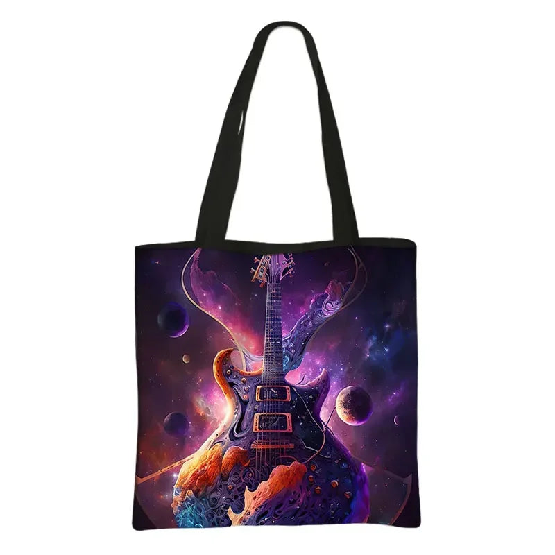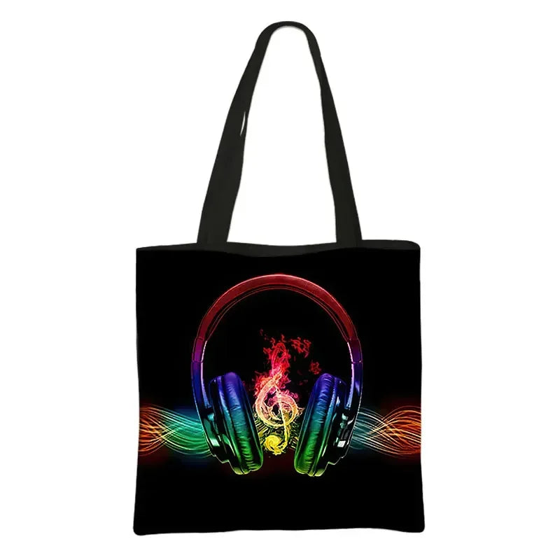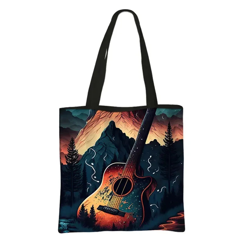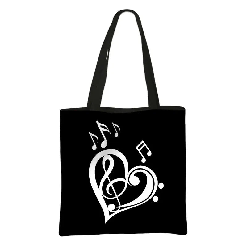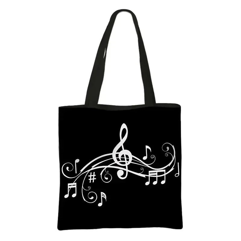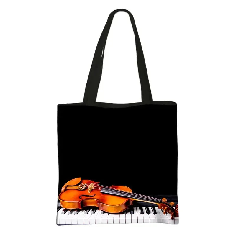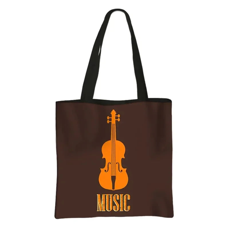 Music Notes Print Tote Bag Musical Instrument Handbag Guitar Violin/Violoncello/Piano Shoulder Bag BookBag Day Bag Shopping Bag