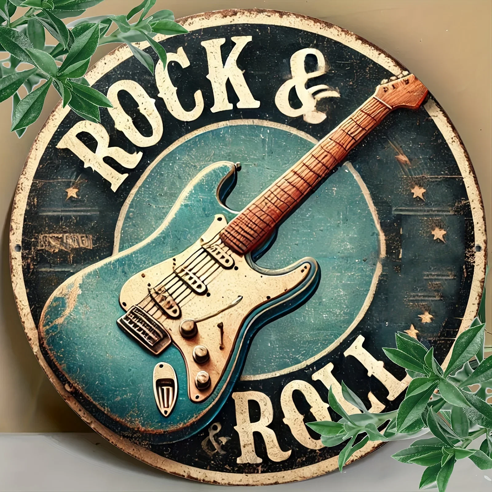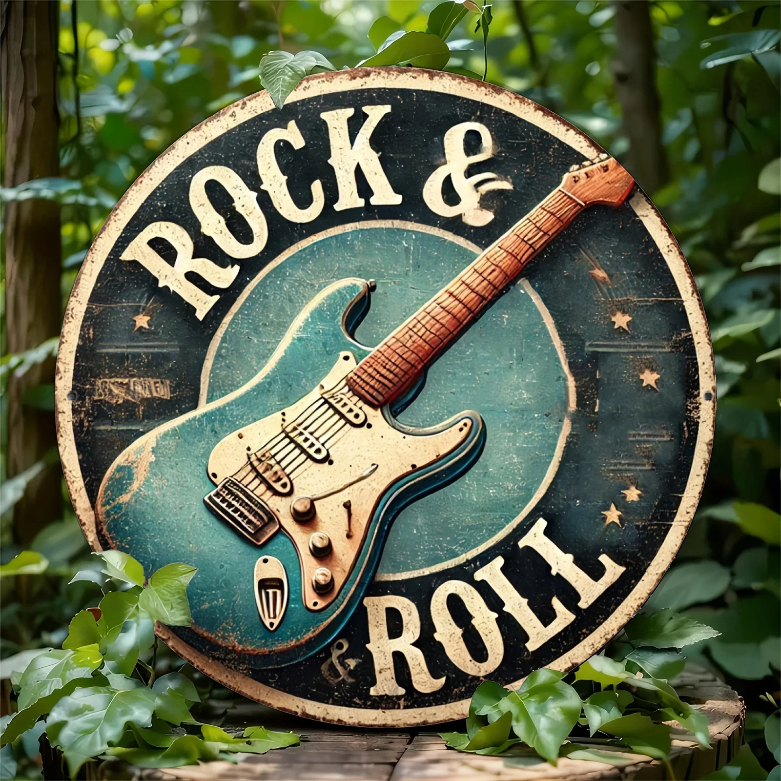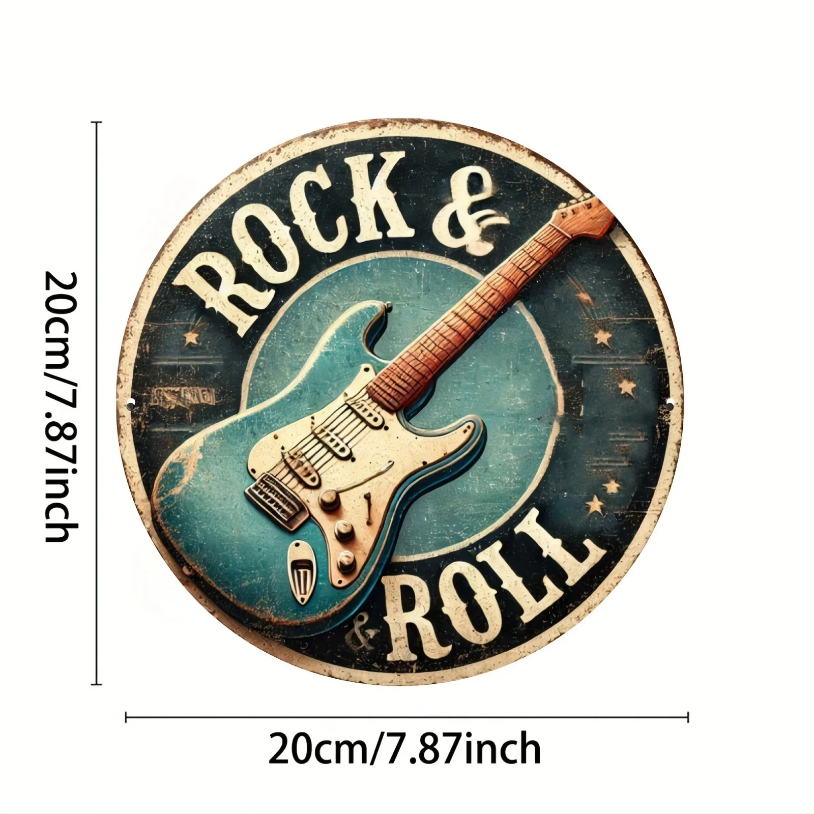 Rock & Roll Guitar Themed Aluminum Metal Tin Sign , Foil Engraved Wall Art Decor - For Home Office - Ideal for Living Room, Bar