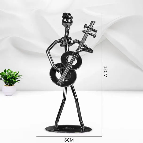 ERMAKOVA 13cm Retro Iron Sculpture Band Instrument Musician Figure Doll Model Crafts Ornaments Home Decoration Accessories Gift
