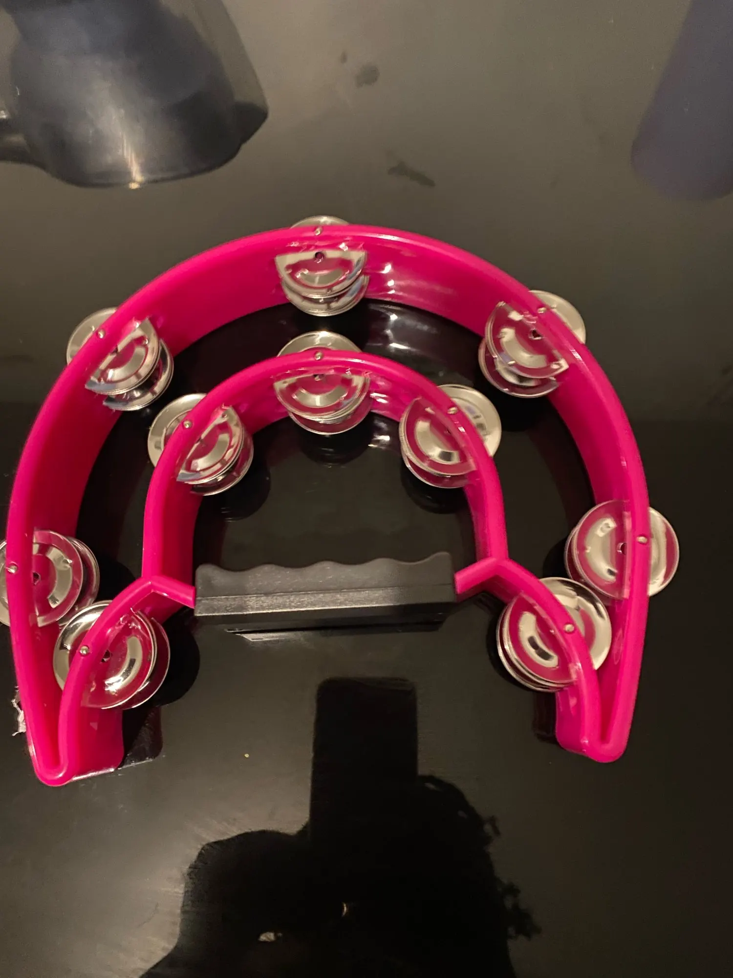 Handheld tambourine with ergonomic grip