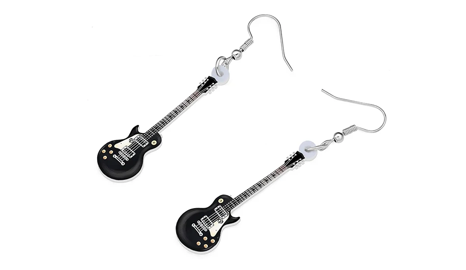 Bonsny Acrylic Anime Guitar Dangle Earrings Musical Instruments Drop Charms Fashion Jewelry For Women Girls Teens Gift Accessory