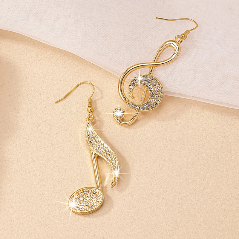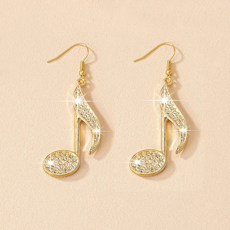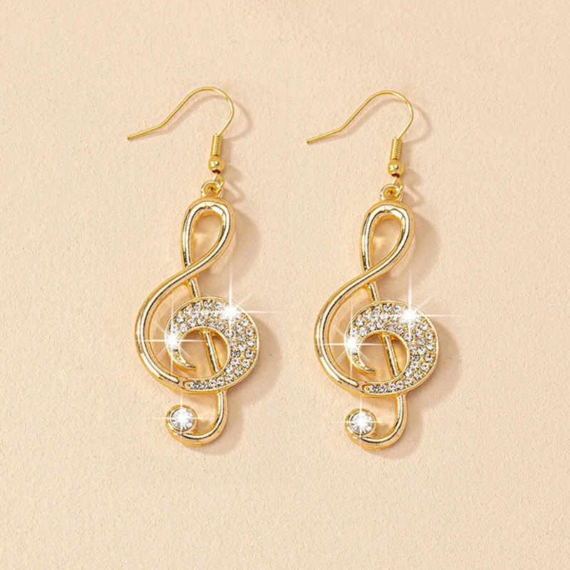 Dangle Earrings Personality Exaggerate Rhinestone Jewelry Women Musical Note Pendant Exquisite Trend Fashion Party Gifts RG0103