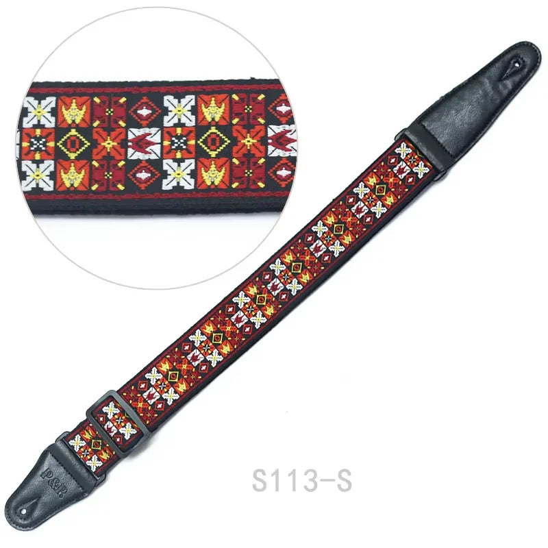 Vintage Embroidered Jacquard Guitar Strap with Genuine Leather Ends
